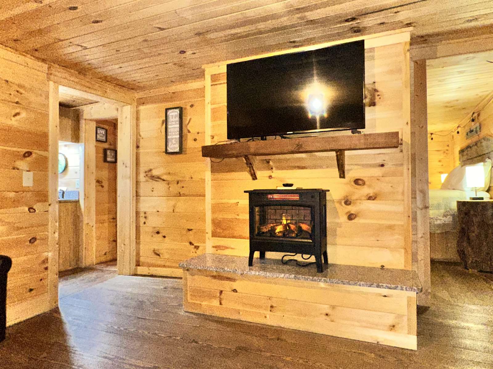 Electric fireplaces in living room and bedroom. Cabins of Asheville +1