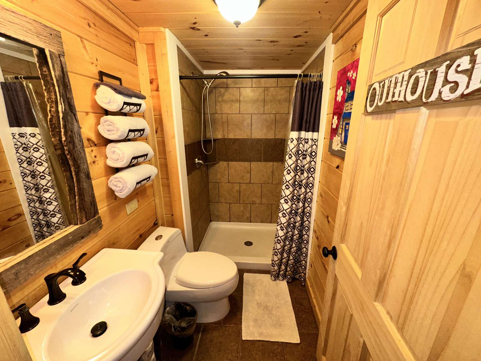 Deadbolt lock, outdoor lighting, fire extinguisher, smoke detector. Cabins of Asheville